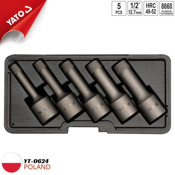 Bộ 5 khẩu 1/2″ nhổ ốc bulong hỏng 8-16mm đảo chiều Yato YT-0624 – Giải pháp hoàn hảo cho các ốc vít cứng đầu!