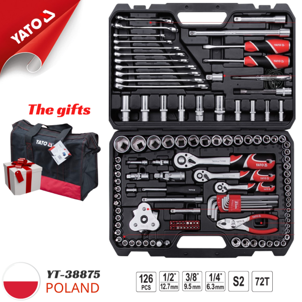 - Khi sở hữu Bộ Tuýp Tay Vặn Tổng Hợp Cao Cấp 126 Món Yato YT-38875, quý khách sẽ được tặng ngay: Một túi đựng đồ nghề Oxford 600D Yato YT-74402