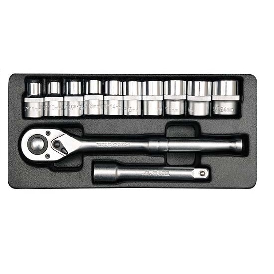 Tủ Đồ Nghề Yato YT-55309 được trang bị các bộ tuýp (khẩu) với các đầu vuông 1/4″, 3/8″, 1/2″ kèm theo các cần siết tự động (ratchet wrench), thanh nối dài, khớp nối đa năng. Các tuýp có đủ kích cỡ, từ tuýp nông đến tuýp sâu, tuýp lục giác, tuýp hoa thị, tuýp bugi, phục vụ cho mọi loại ốc vít trên xe.